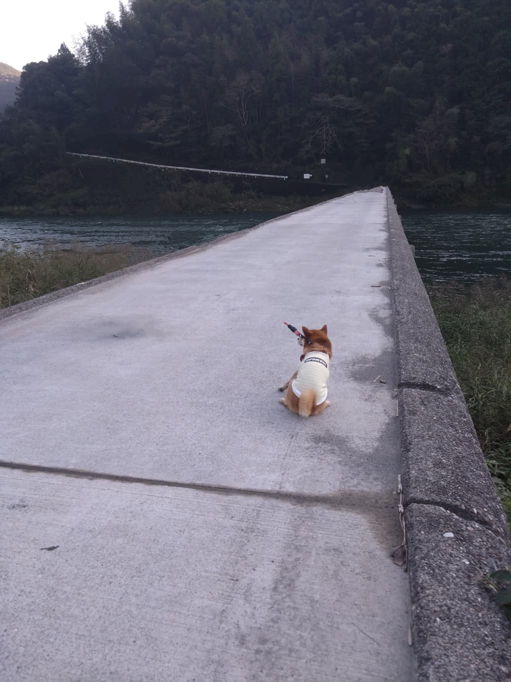 道中の道路が狭く、河原の空き地に駐車しないといけない為、橋まで歩く際にワンちゃんが飛び出したりしないように注意が必要です。