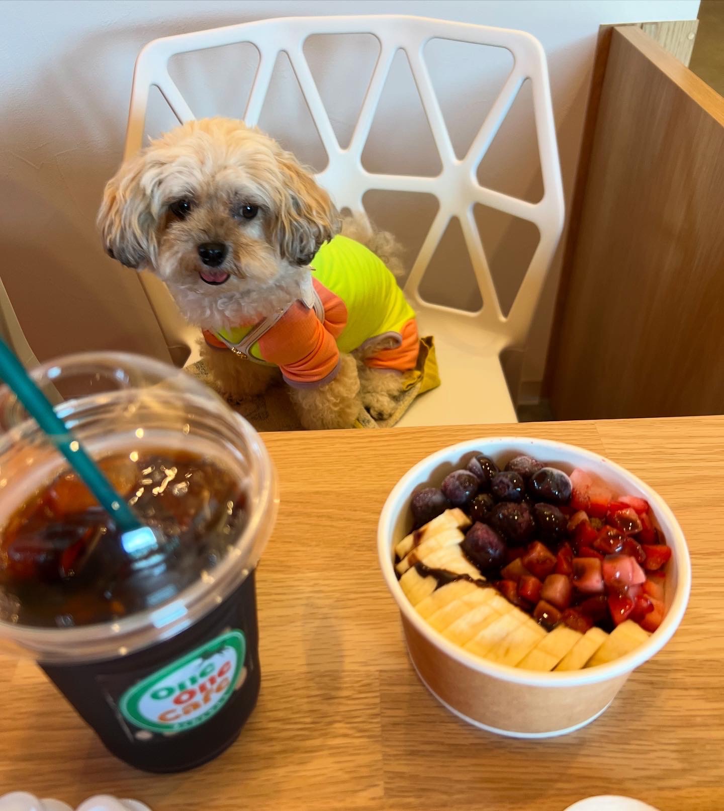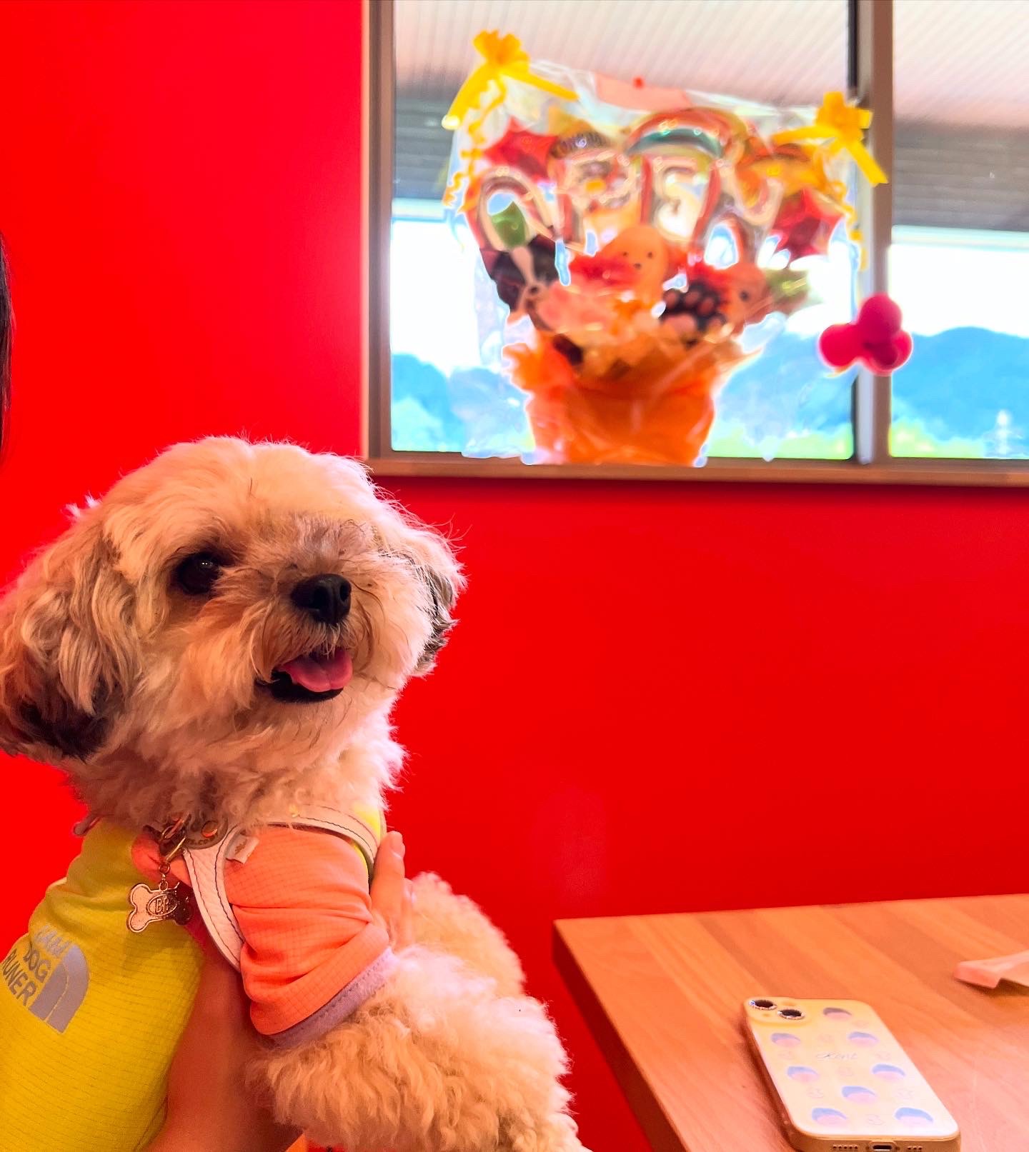 店内OKのカフェです。ドッグランもあります。有料です。カフェは半個室になっていて、ドアがあるので、わんこをフリーにできます。