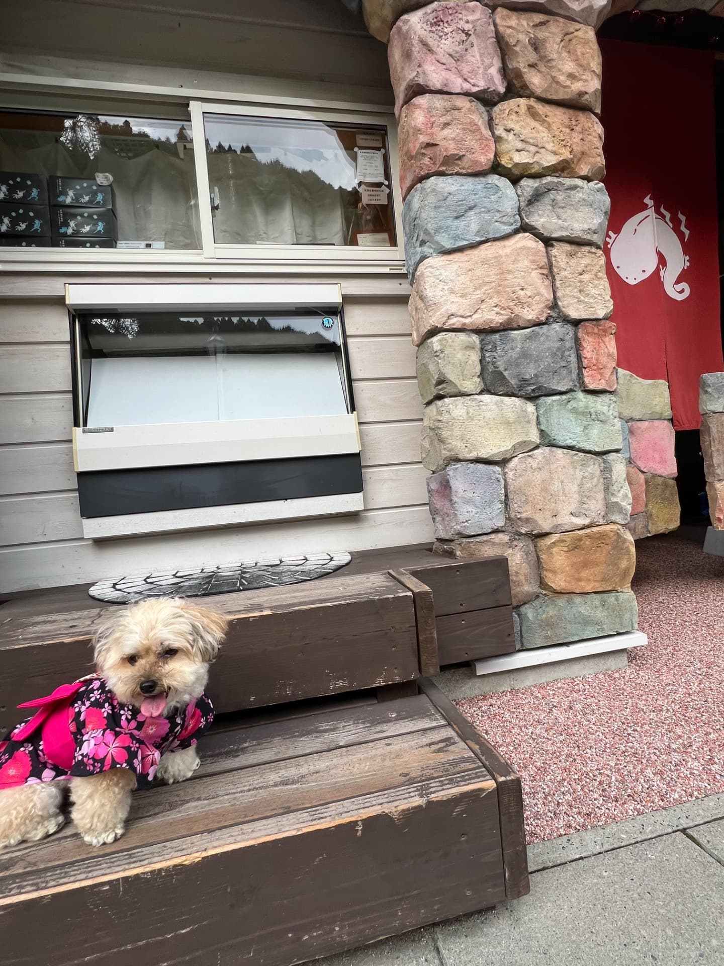 カヌレとドリンクのお店。 お店の外観も可愛いです。テイクアウトして温泉街をお散歩。