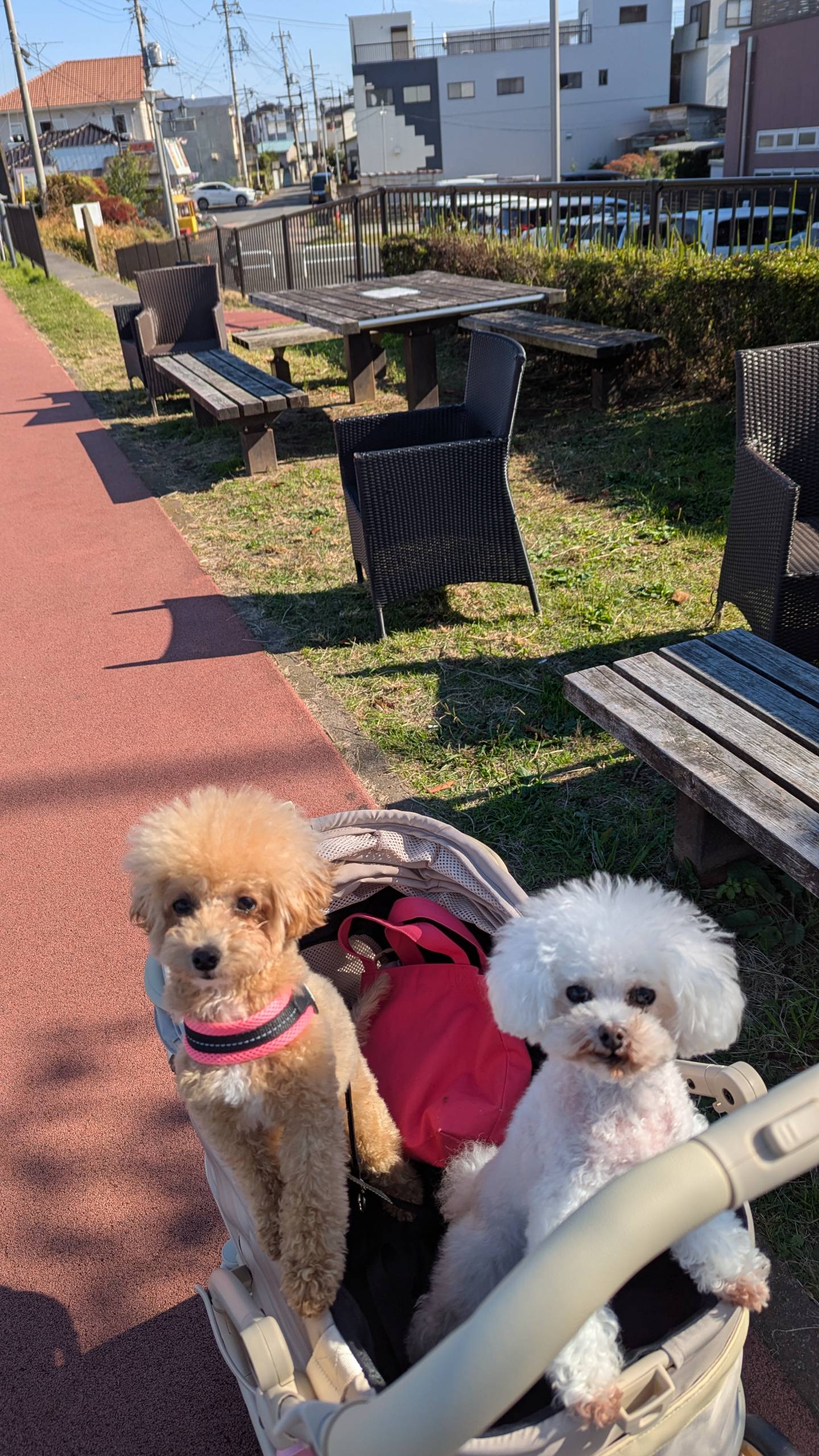 わんちゃん連れの方たくさんいるし道も歩きやすいです。トイレ、自販機あります◎