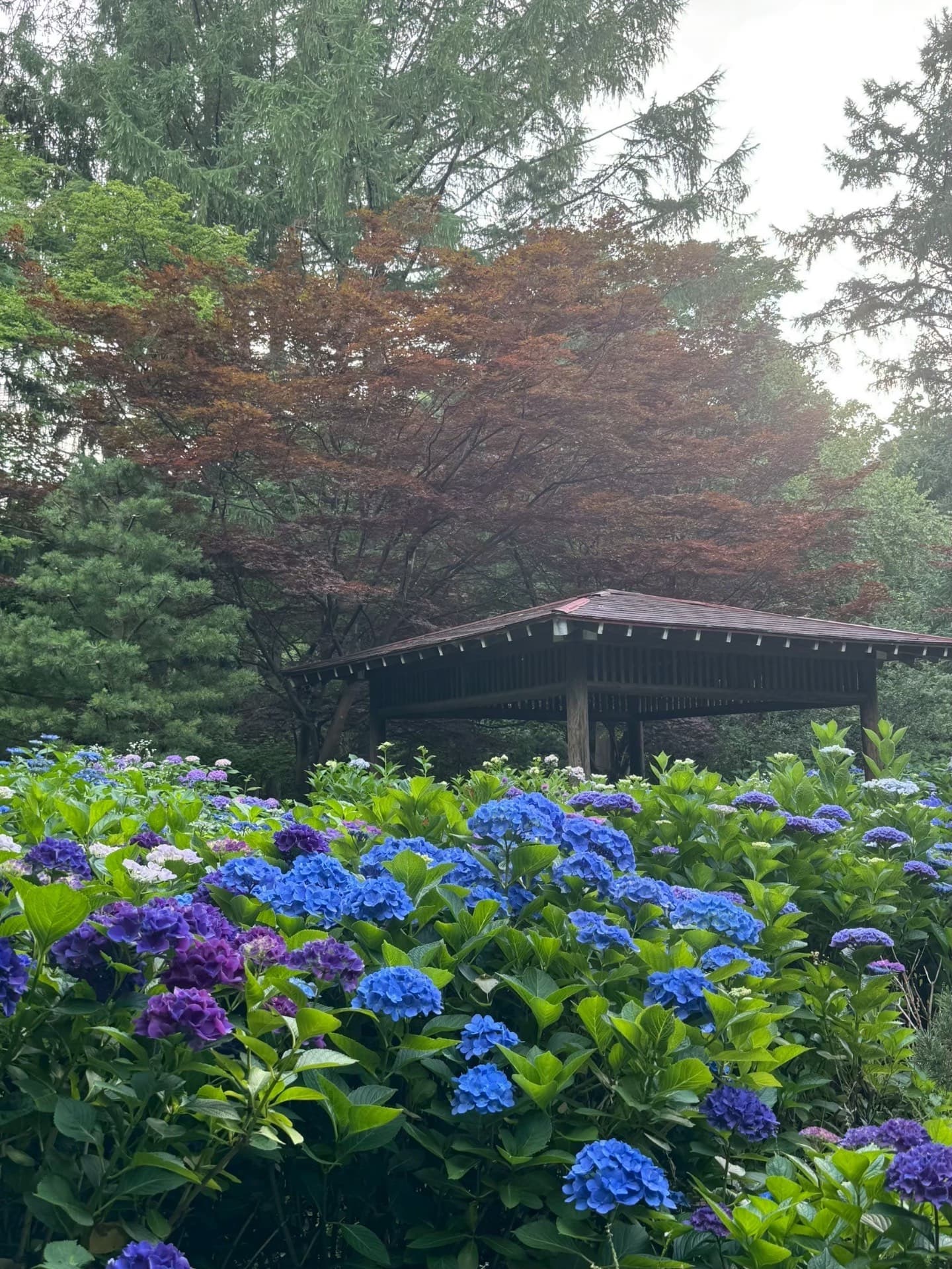 都心部に近いのに公園内に入るとそんな事を感じないくらい樹林が広がっていて、白樺並木と紫陽花のコラボが有名です。