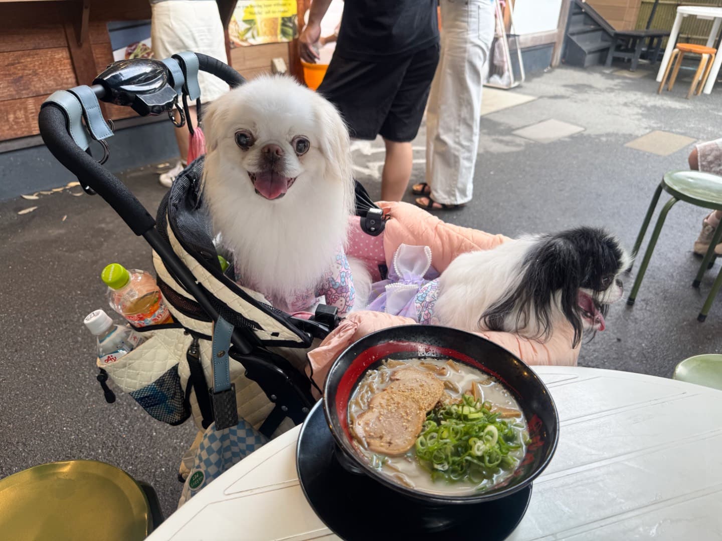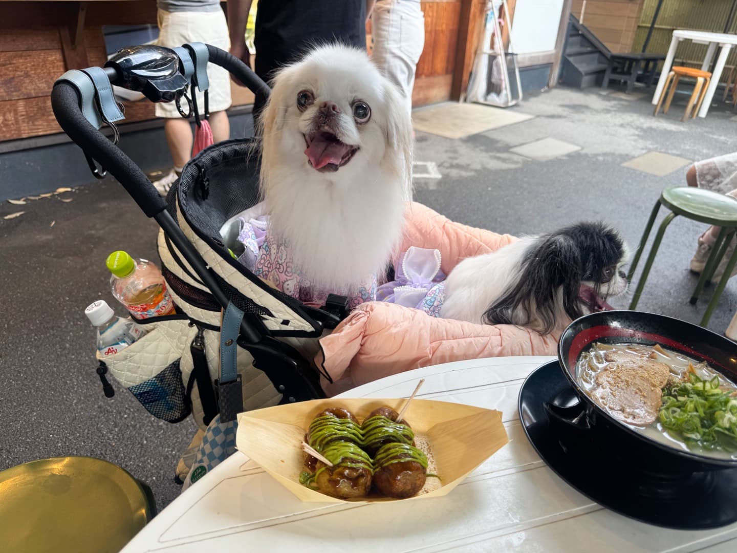 テラス席わんこOK 抹茶ラーメンやたこ焼きが食べられる