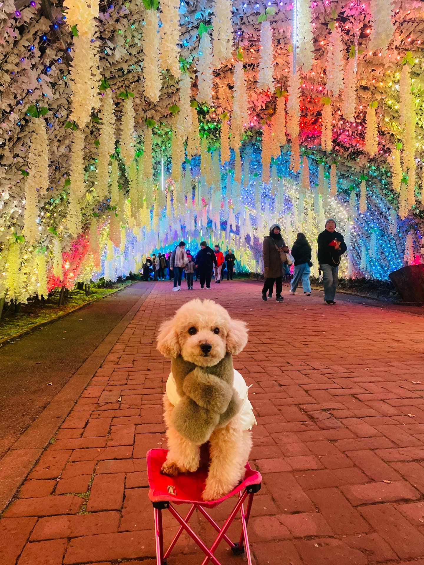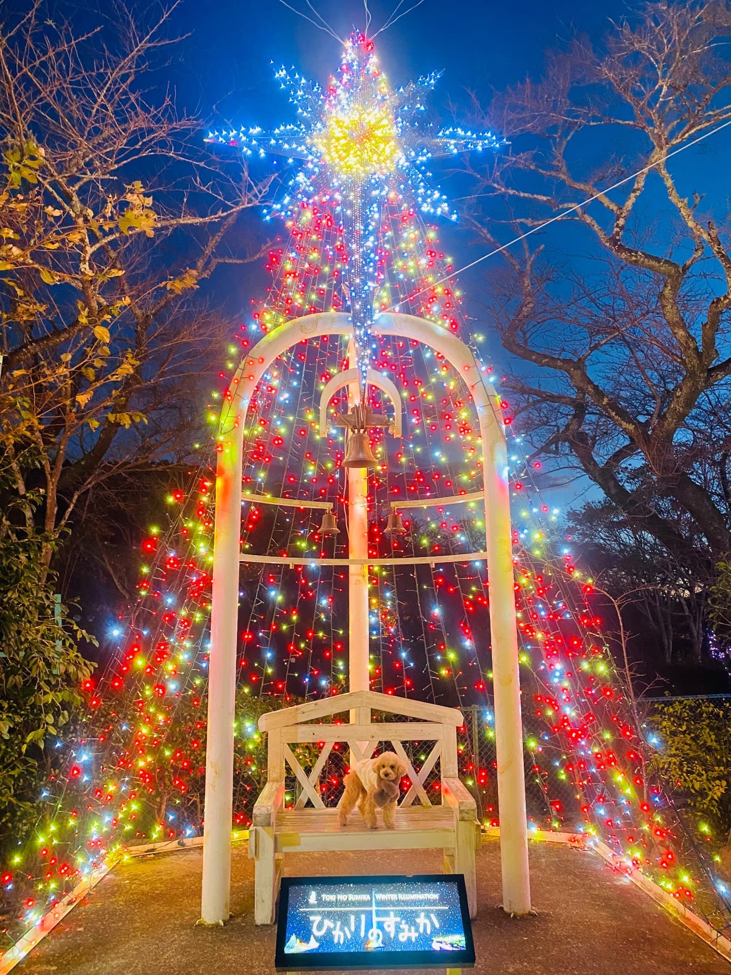 時之栖のイルミネーションなんと無料です、わんこはリードで歩けます