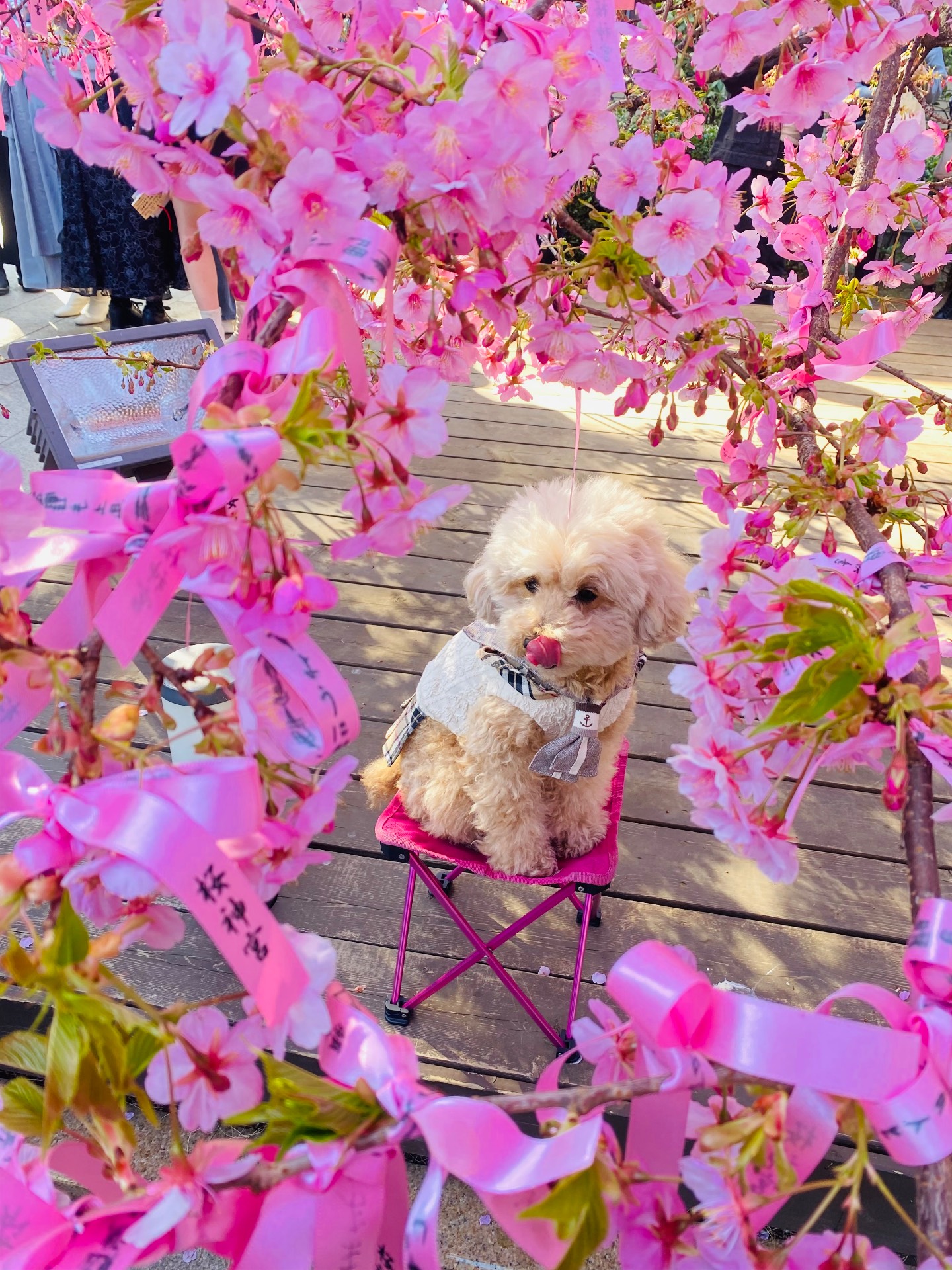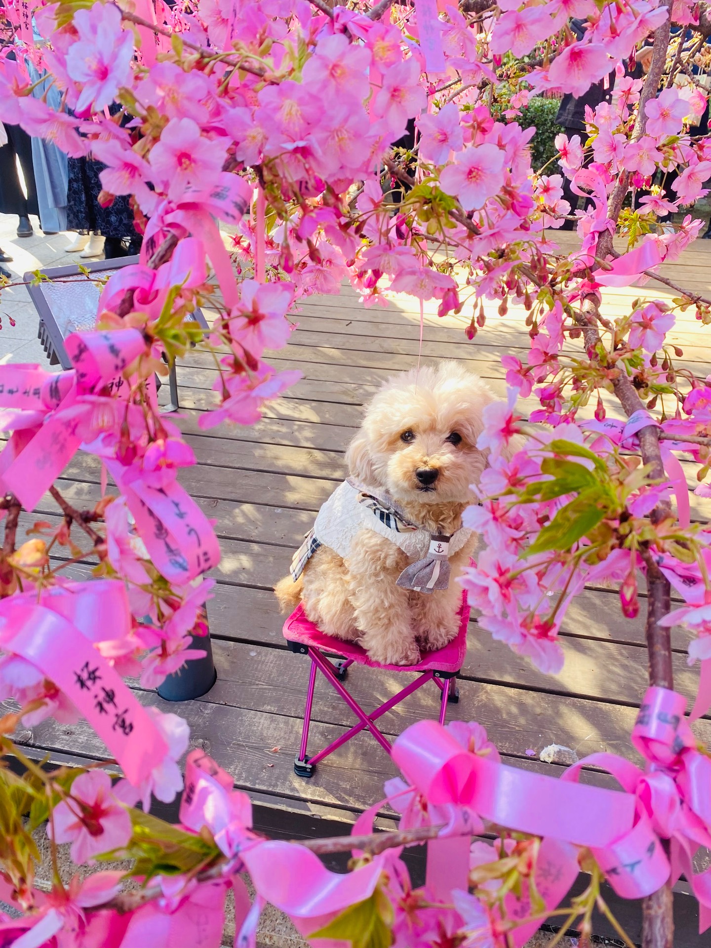 桜の時期はもの凄い人なのでわんこは歩けません