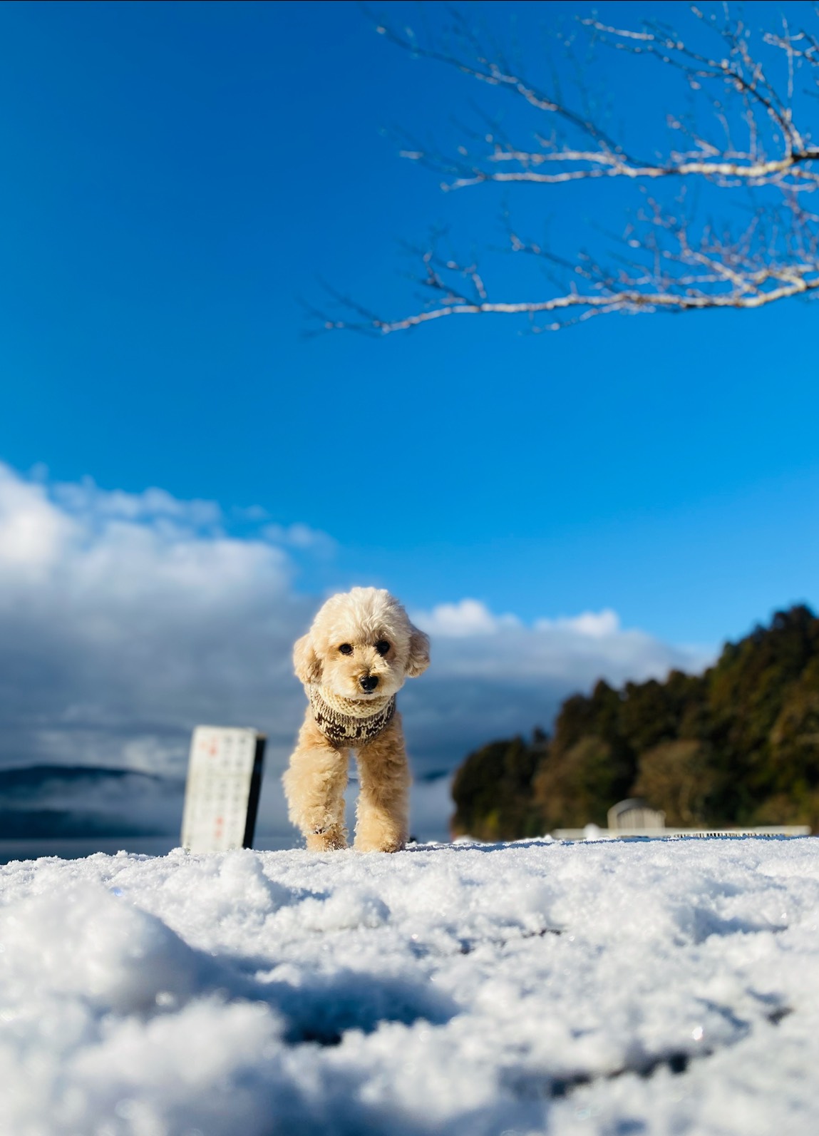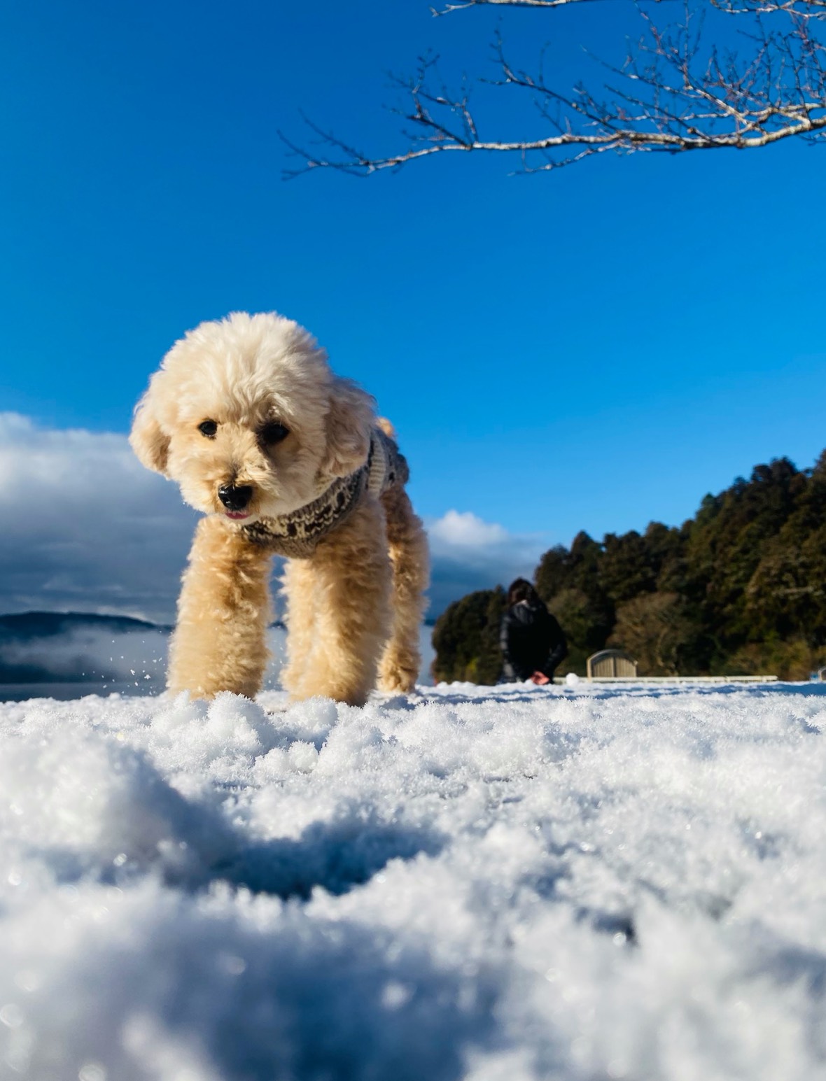 芦ノ湖で雪遊び、わんこリードでOK