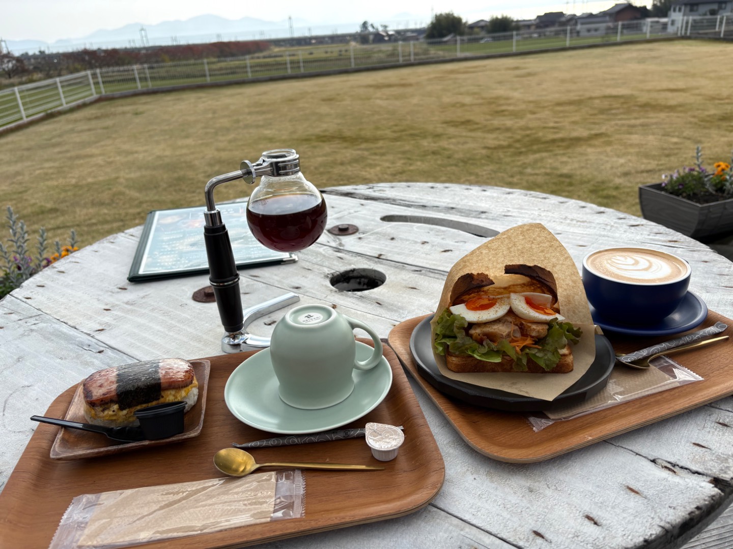 わんこ連れだったので、ウッドデッキにシートを引いてもらいました。11月でしたが、天気も良く暖かくて過ごしやすかったです。