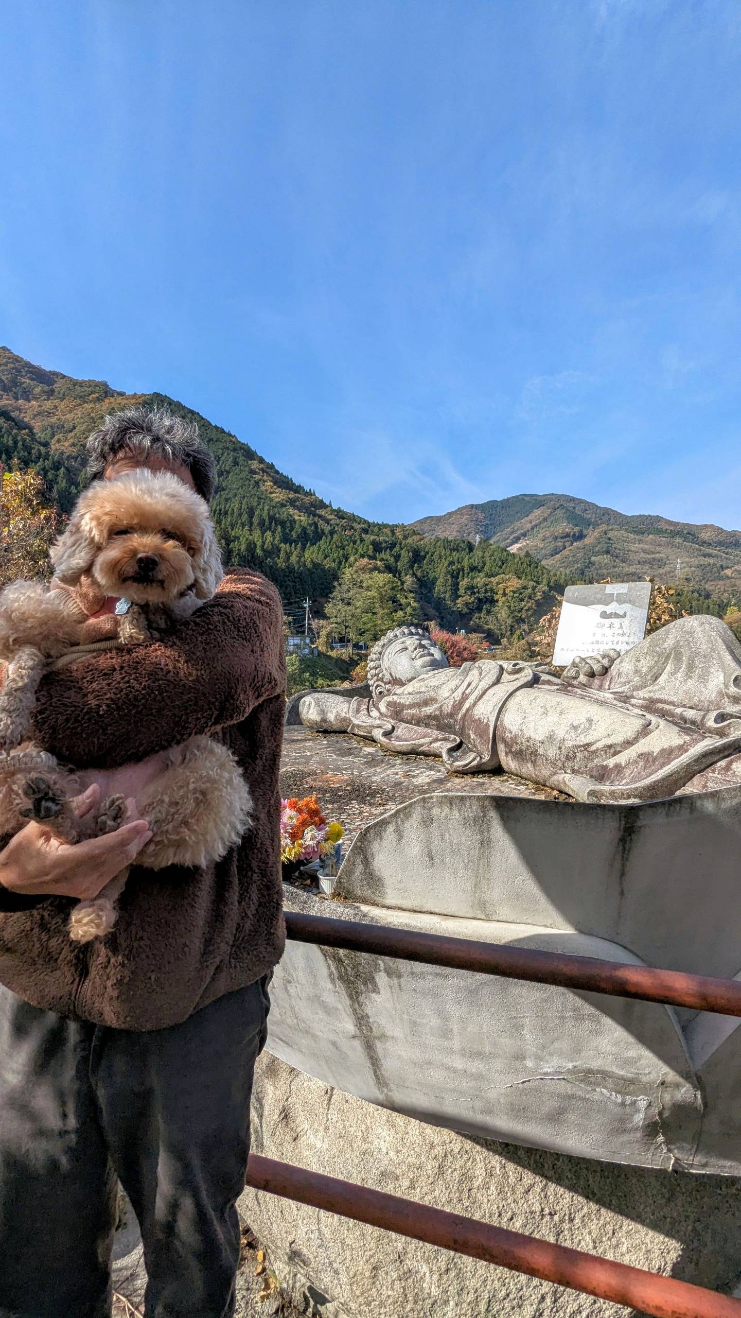 駐車場が広く、集団でバイクや観光バスも来ますので、車から出たら注意が必要です。