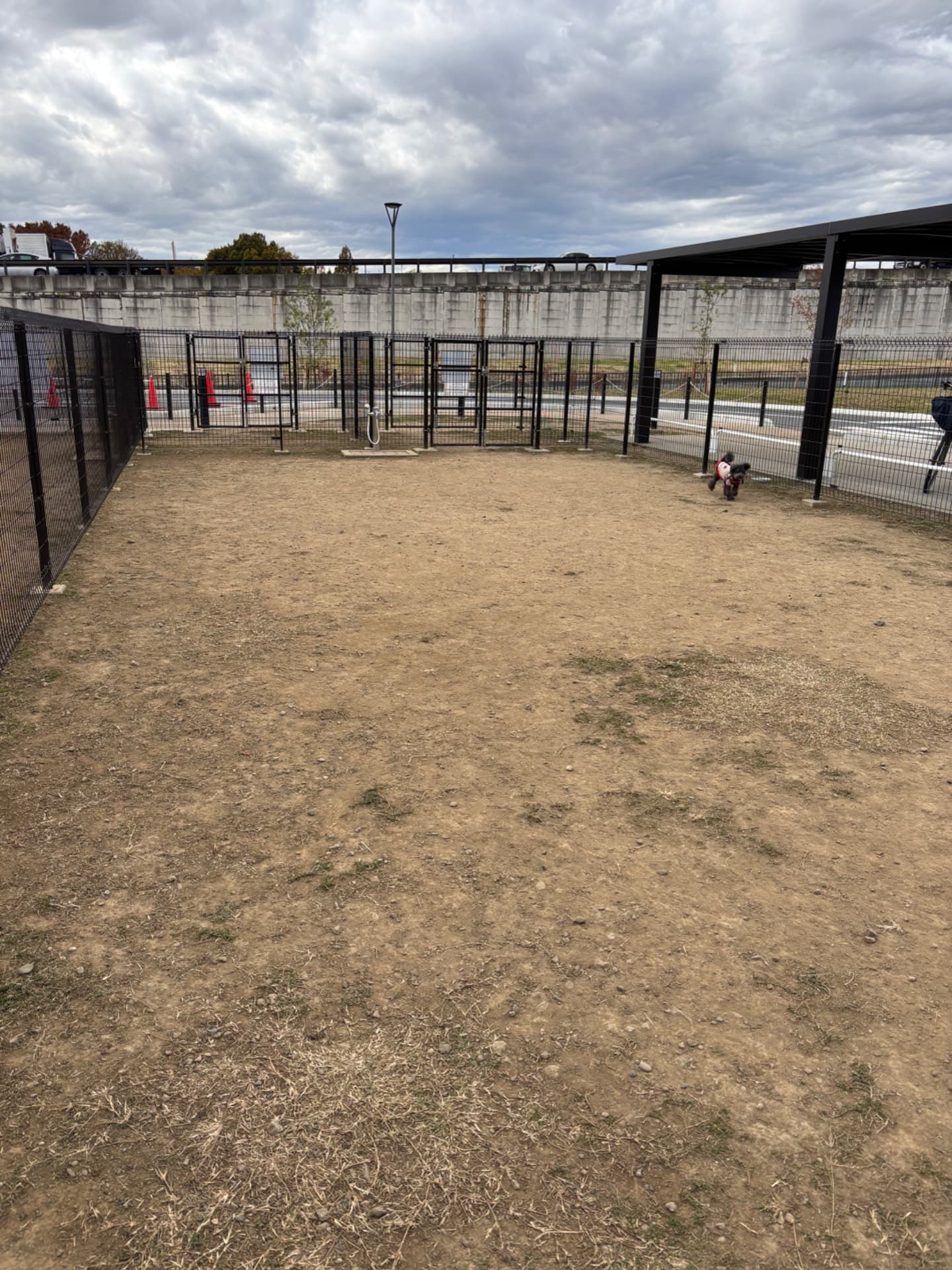 ドッグランの中に水道があり便利です。小型犬と大、中型犬に別れています。平日だったので貸切でした〜。建物の中にはお土産や野菜を売っている所や食事する所がありますが、こちらも休日は混雑らしいのですが、平日はそれ程ではありません。美味しそうな物がいっぱいあり、うしろ髪を引っ張られながら帰って来ました。😭