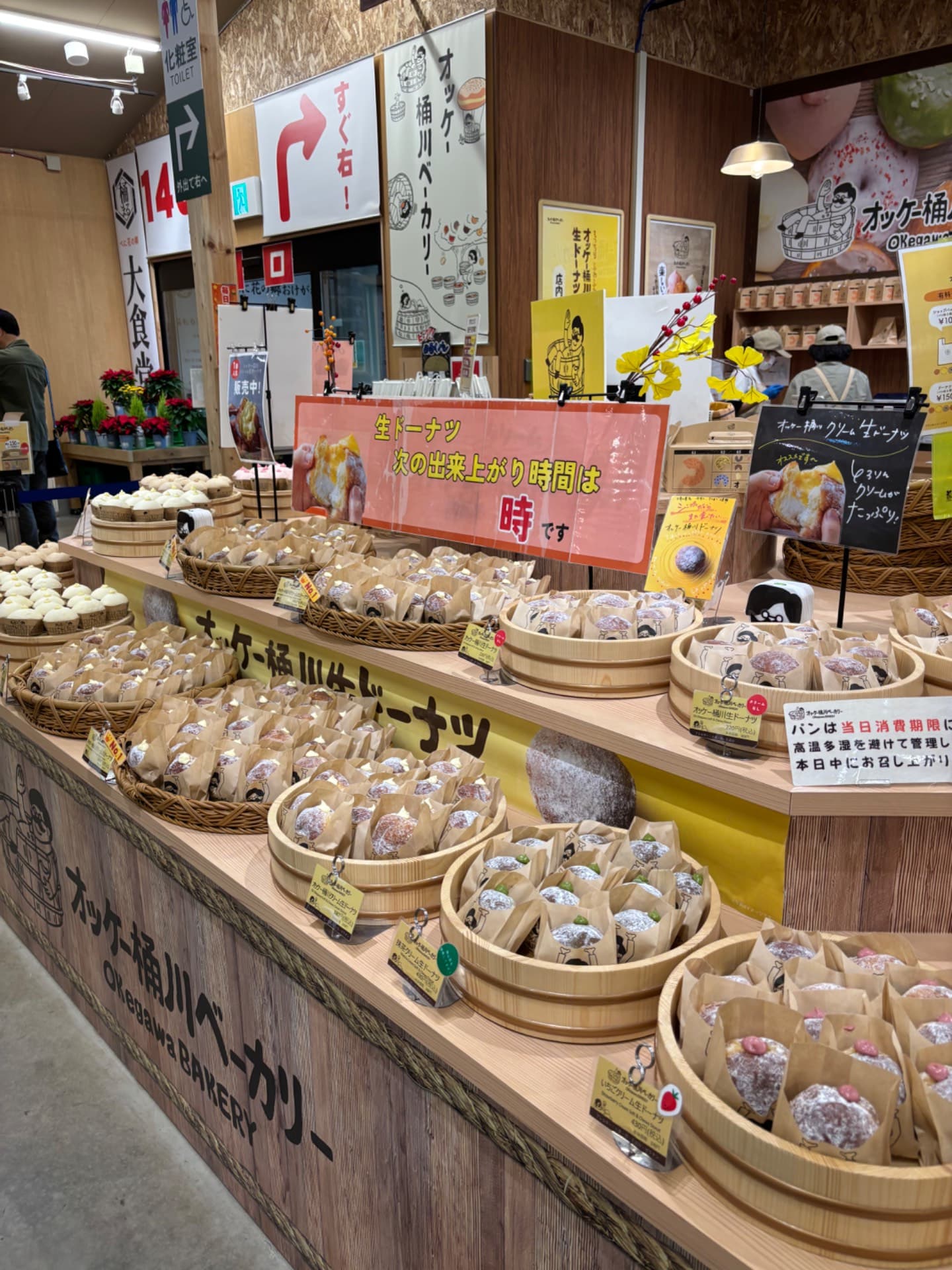 まず券売機で商品を選択してチケットを買う列に並び、買ったらまた違う受け取りの列に並びます。あれじゃ〜行列出来るはずです。知らないと最初から受け取りの列に並んでしまって並び直ししないとなりません! 何の説明書きも無いので分からないです💢