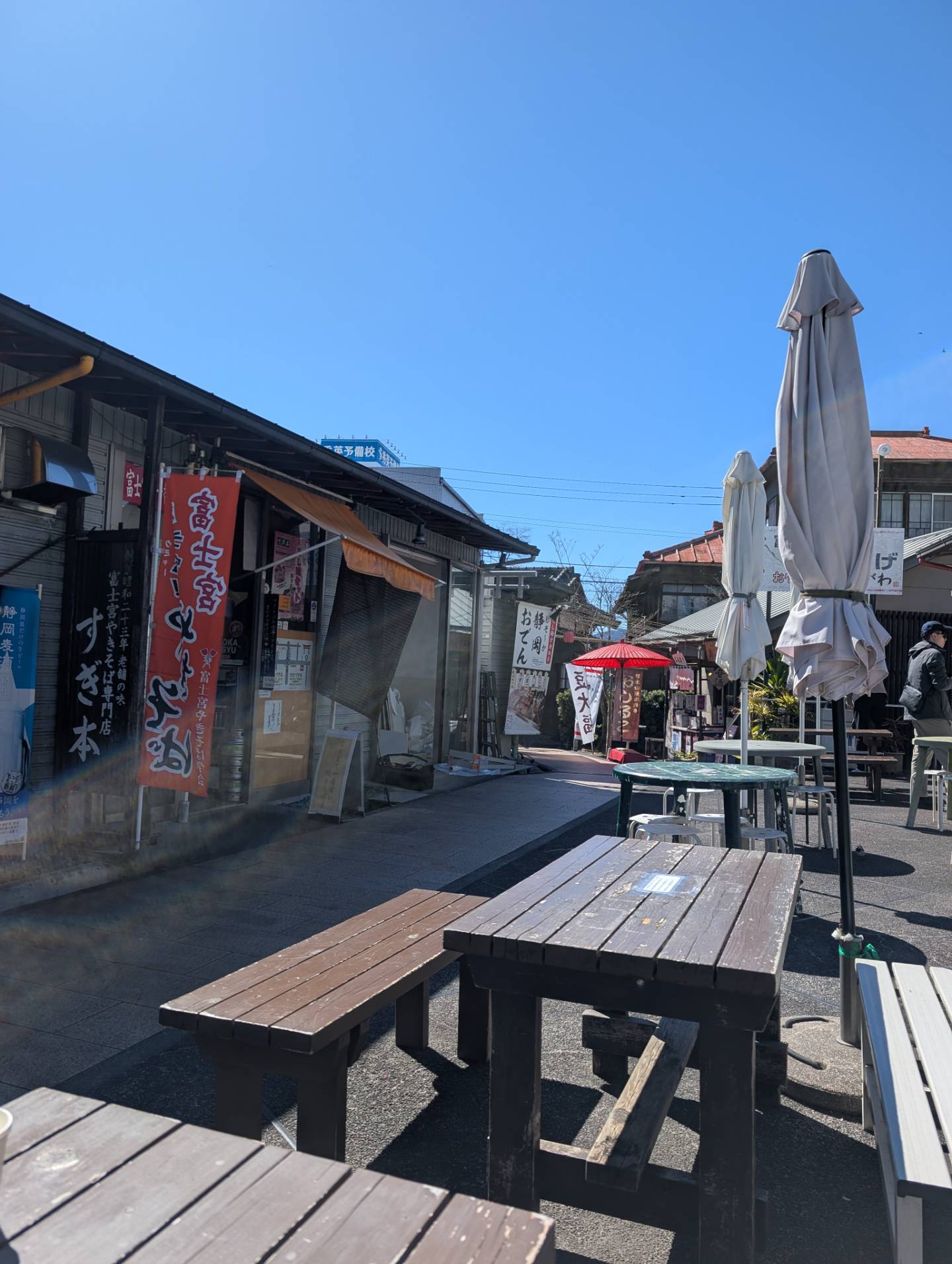 富士山本宮浅間大社と静岡県富士山世界遺産センターの間にあり、富士宮やきそばやジェラートなど、富士宮の名産が楽しめる横丁です。