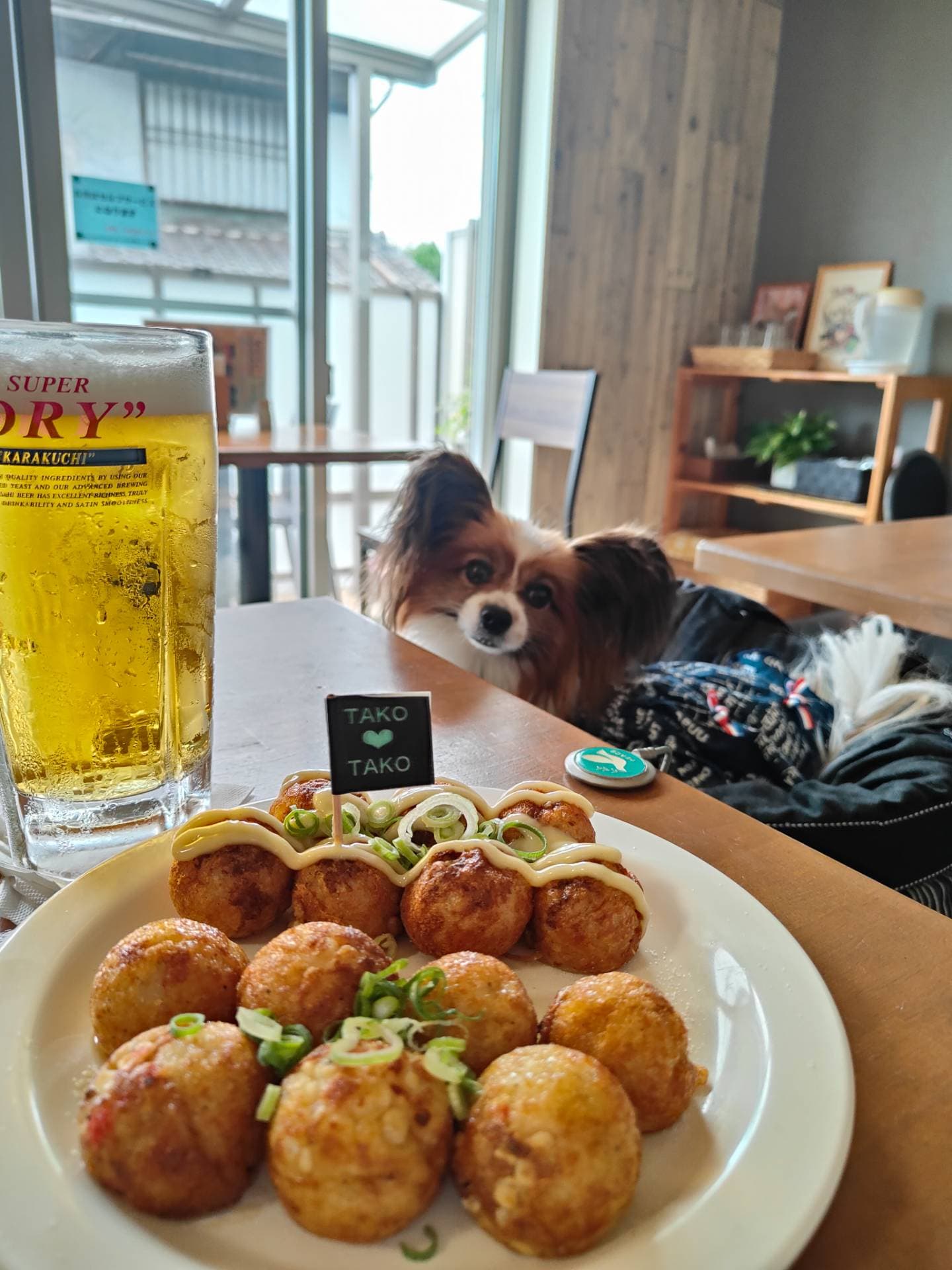 店内わんこOKです♪ 注文してから焼いてくれる 熱々たこ焼きは美味しー😋 座席の数が限られてるので 予約してから訪問するのがオススメです。