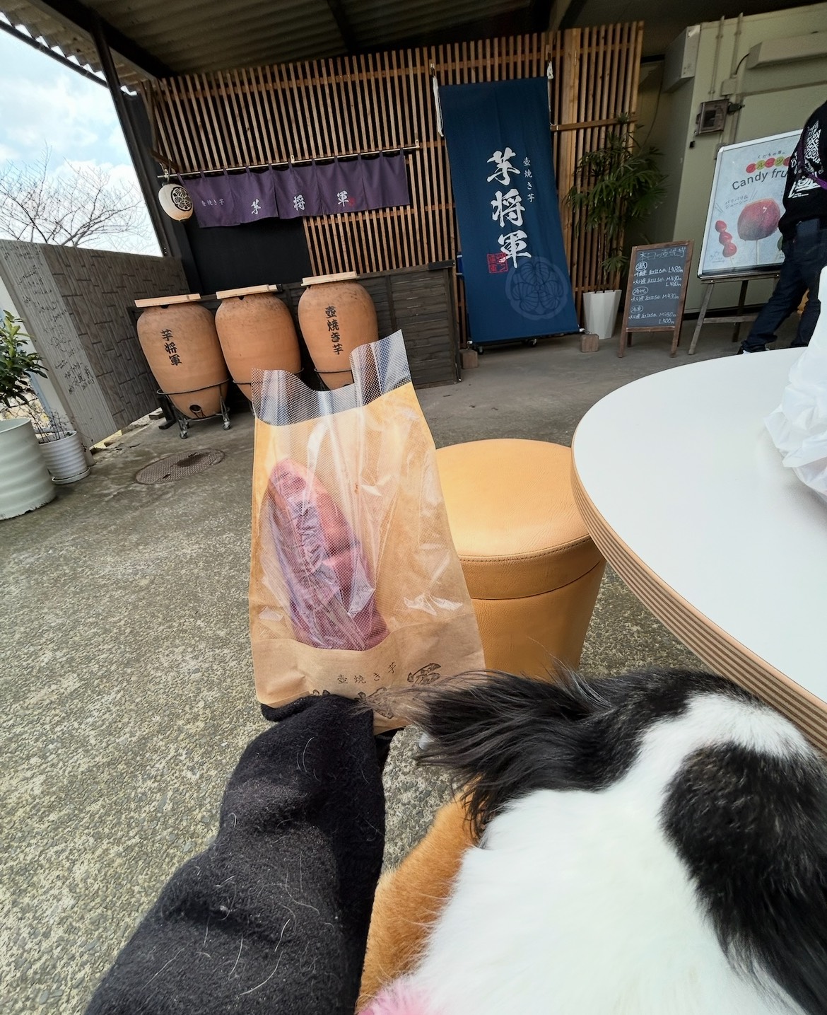 すごい甘いねっとり系の焼き芋でした!焼き芋の他にもかき氷やフルーツ飴なども販売されていました、小さな売店みたいな感じで食べ物が出来上がるまでの間買い物もできますドッグメニューはないですが焼き芋なので愛犬と一緒に食べられて嬉しいです