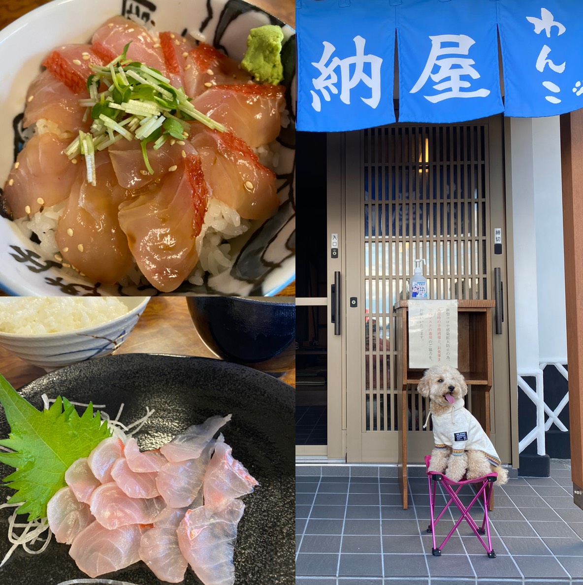 新鮮な海鮮が食べれるご飯屋さん、わんこ店内OK