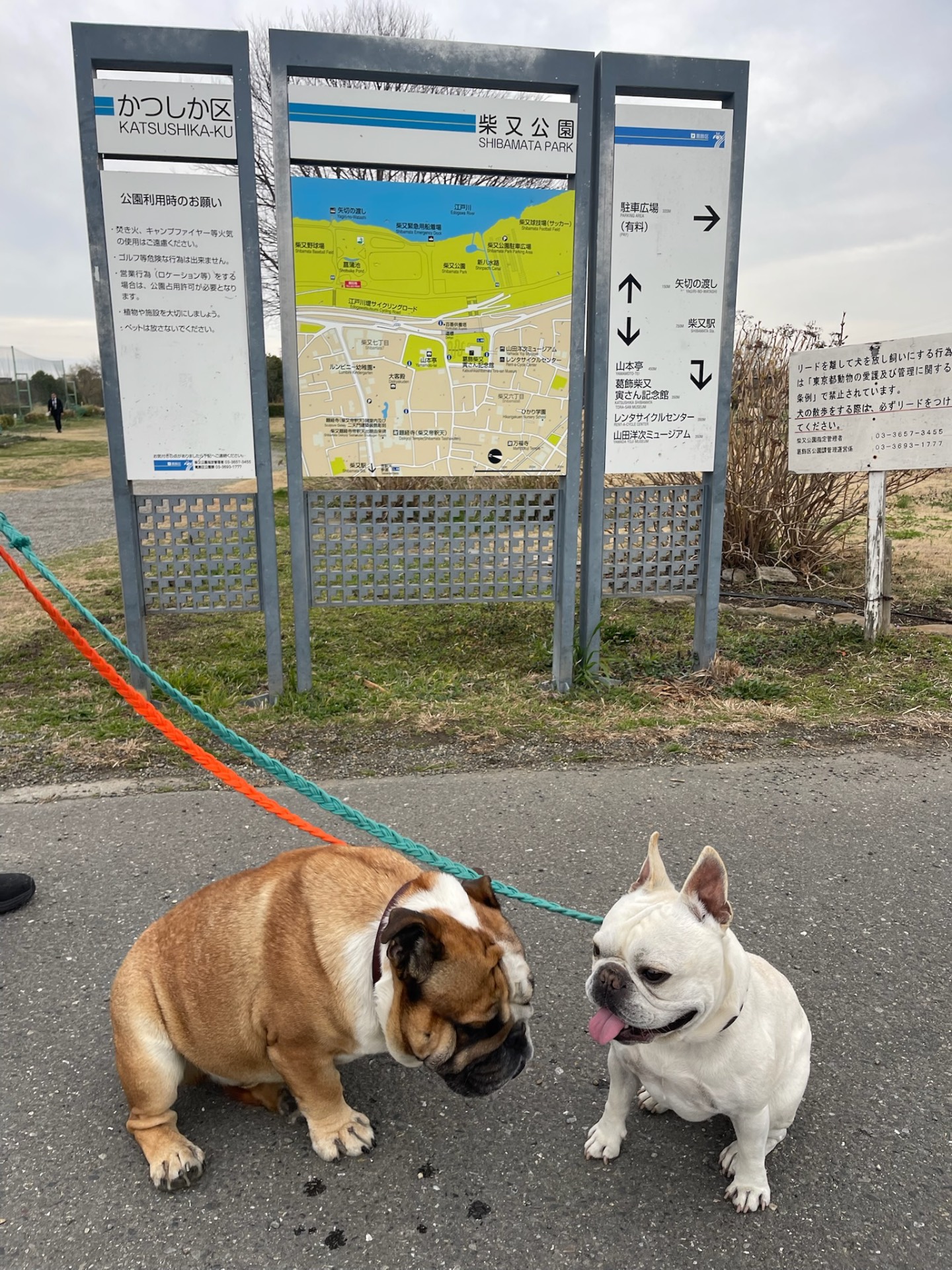 帝釈天参道からも歩いて行ける柴又公園は、江戸川河川敷に面した開放的な公園🐶 愛犬との散歩にちょうどいい抜け感があり、町歩きとセットで楽しめるスポットです🐾