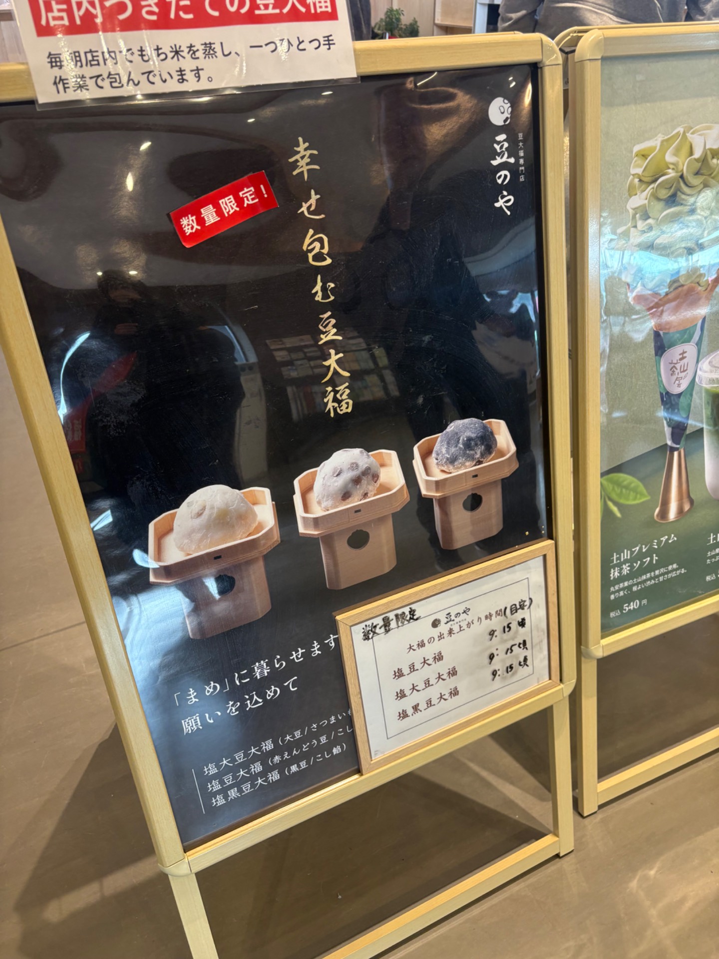 美味しい豆大福など美味しいスイーツが販売されてます。自分で作るソフトクリームもたのしいよ!