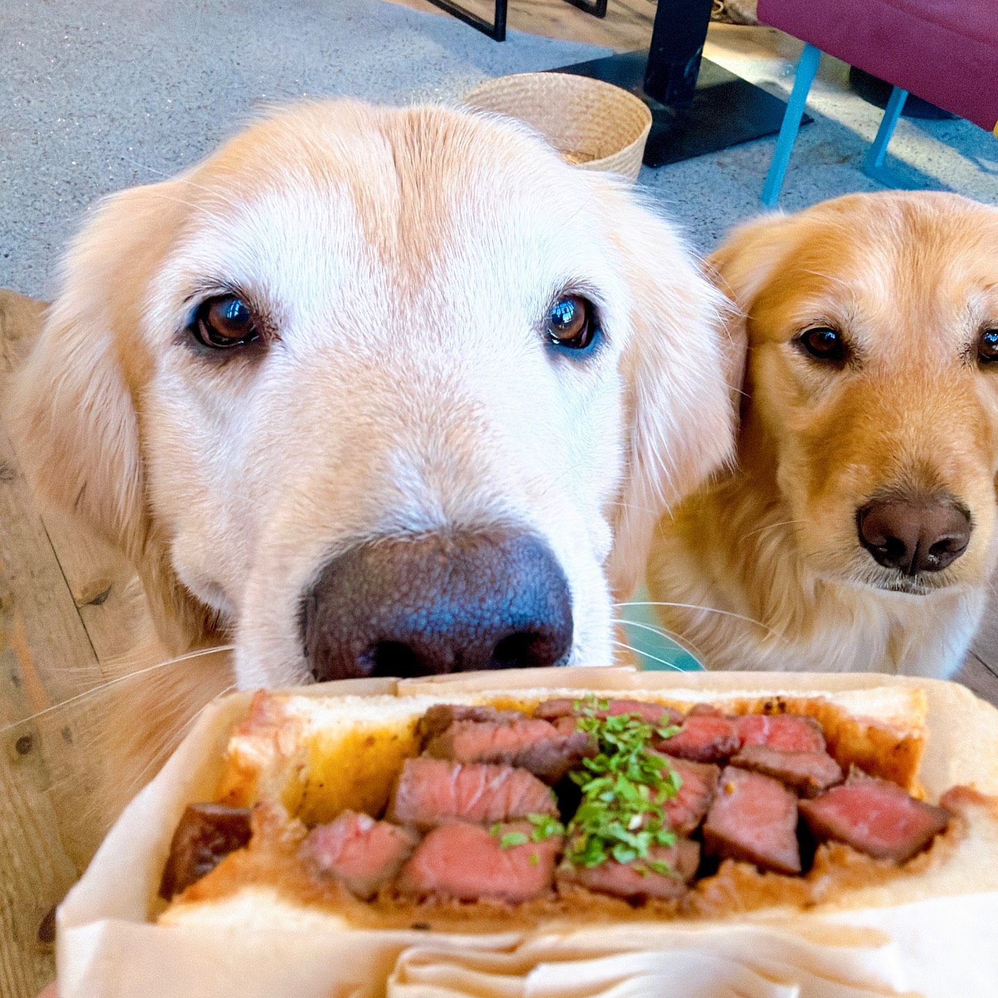 オシャレな店内でわんこと一緒にホットサンドを食べる事ができます😊