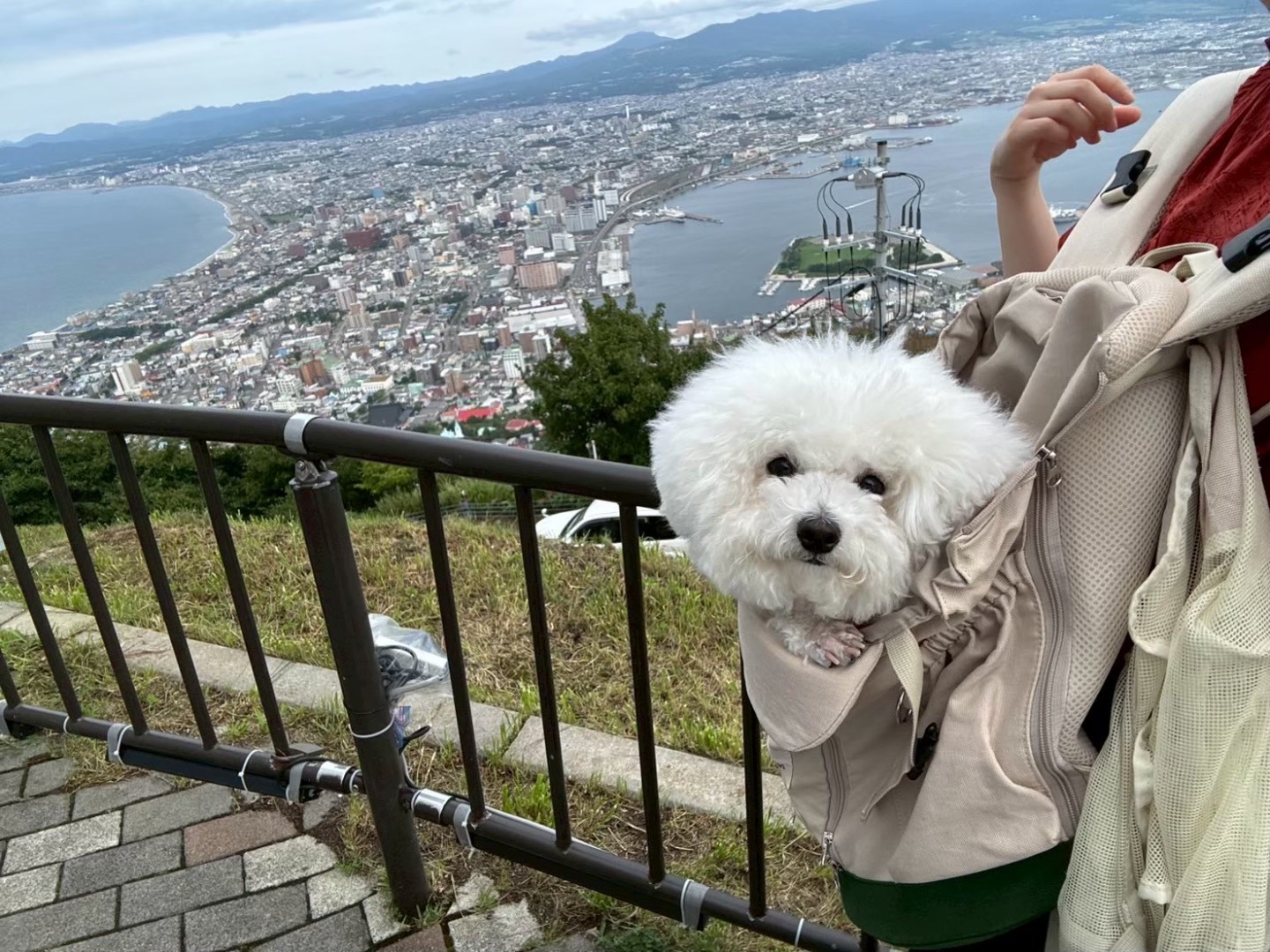 ロープウェイ内では犬は全身を隠さなければいけません。観光客がたくさんいます。夜のロープウェイ内は混むのでカートはあまりお勧めできません。