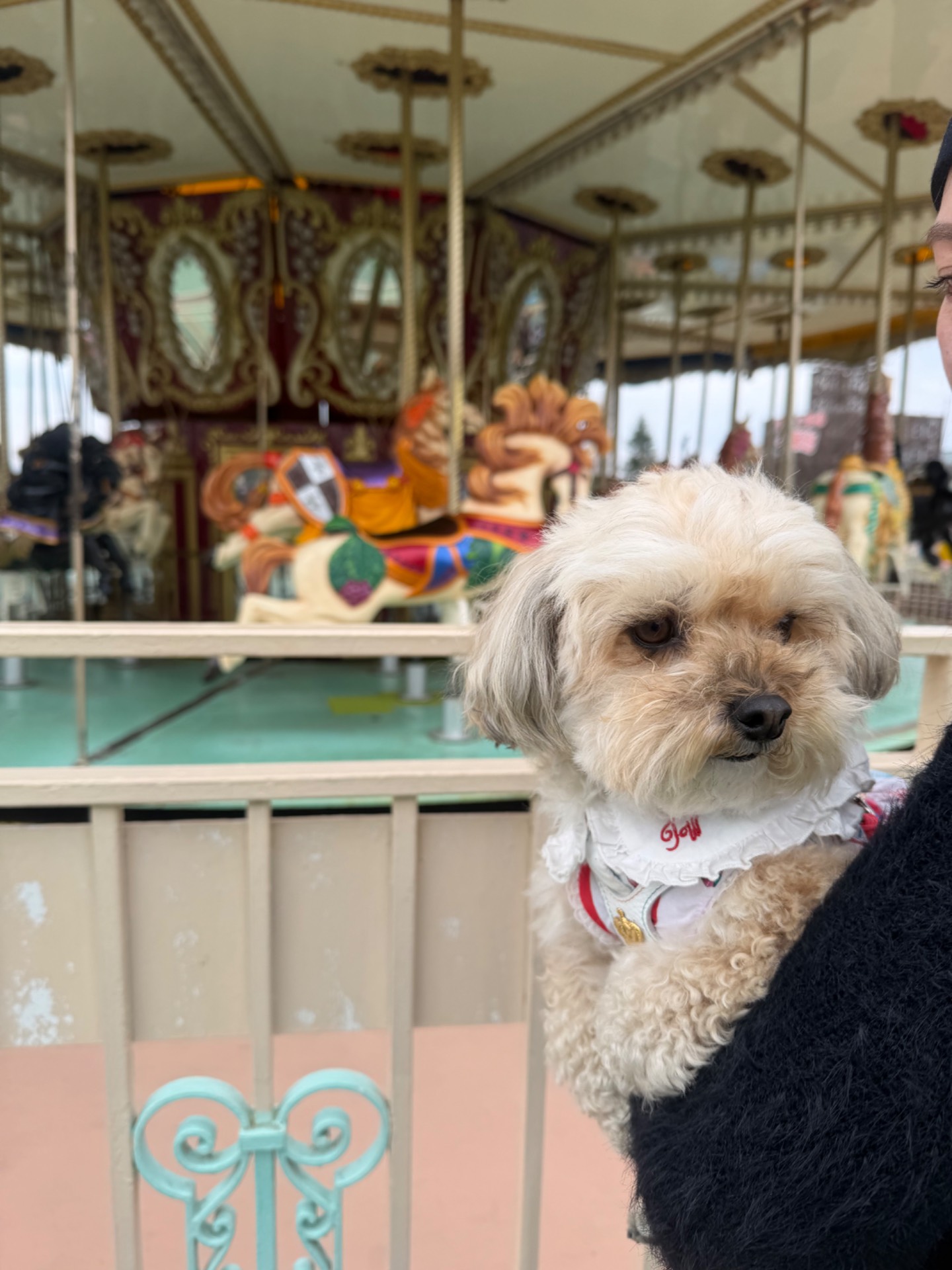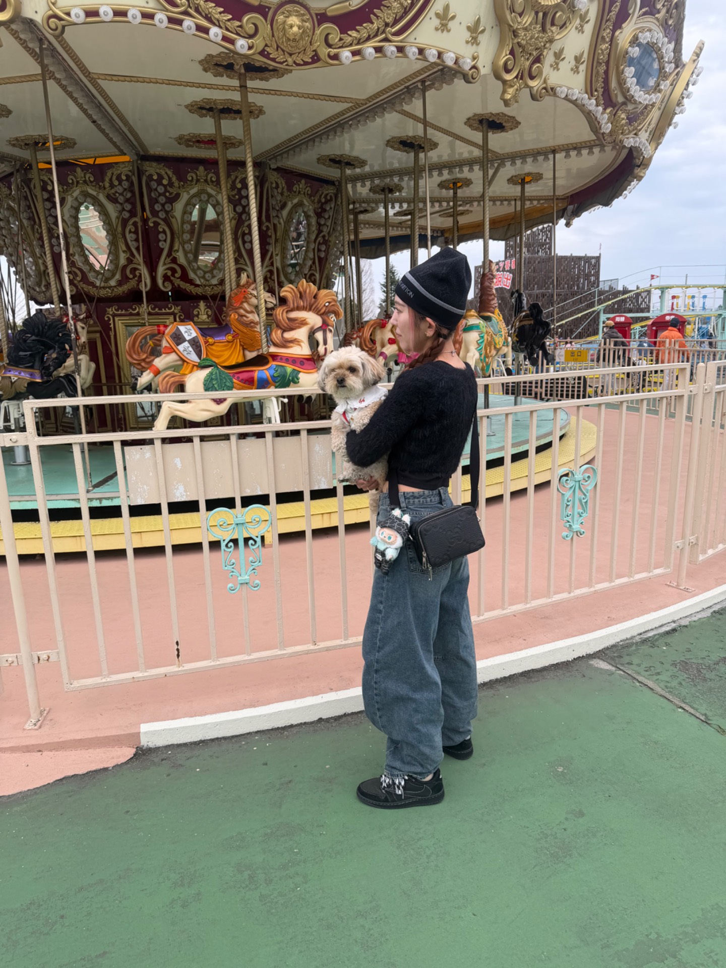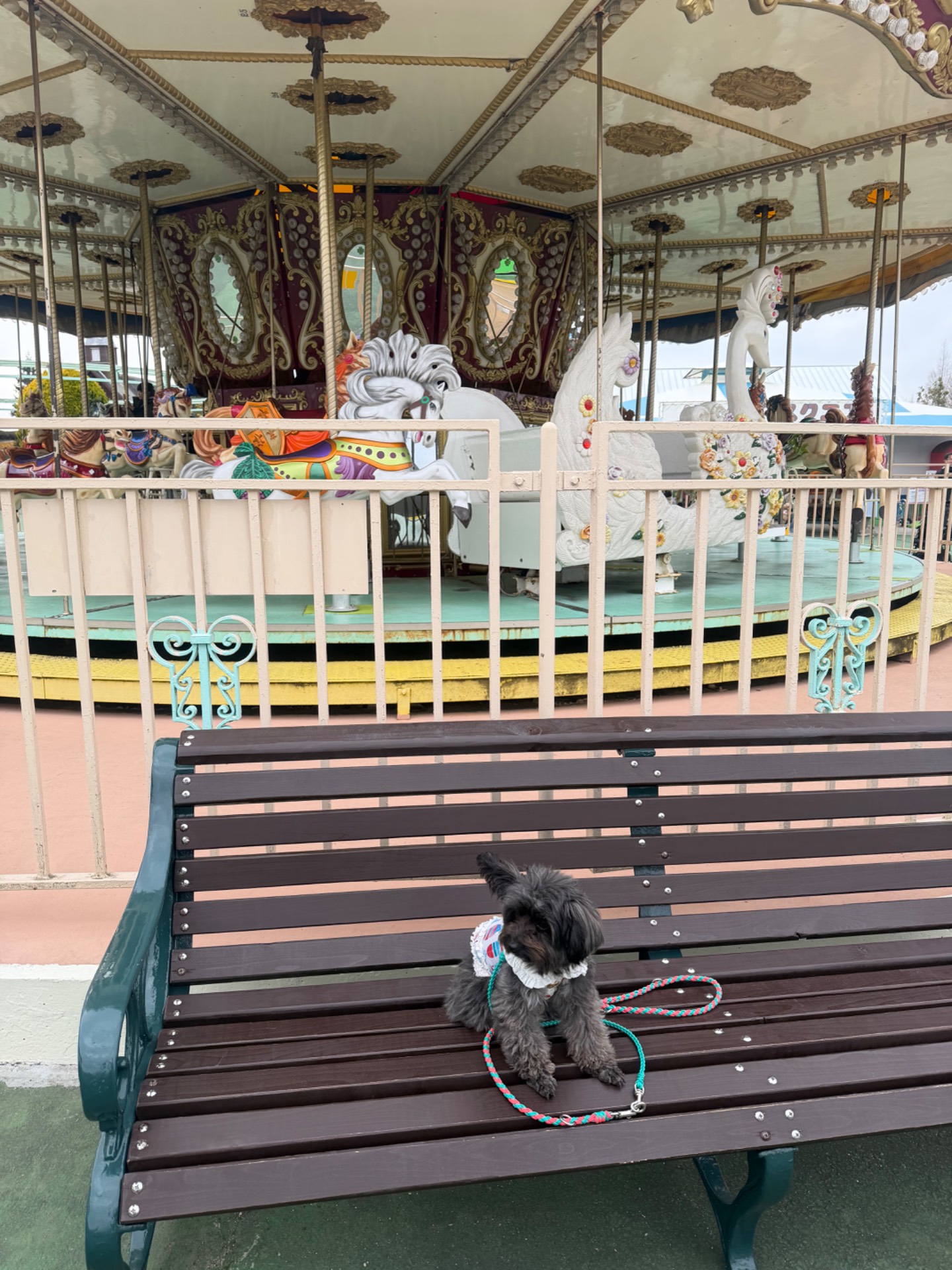 小さい子向けの遊園地ですけど、わんこと一緒に入れます。回数券を買うので、入場だけは無料で入れます。