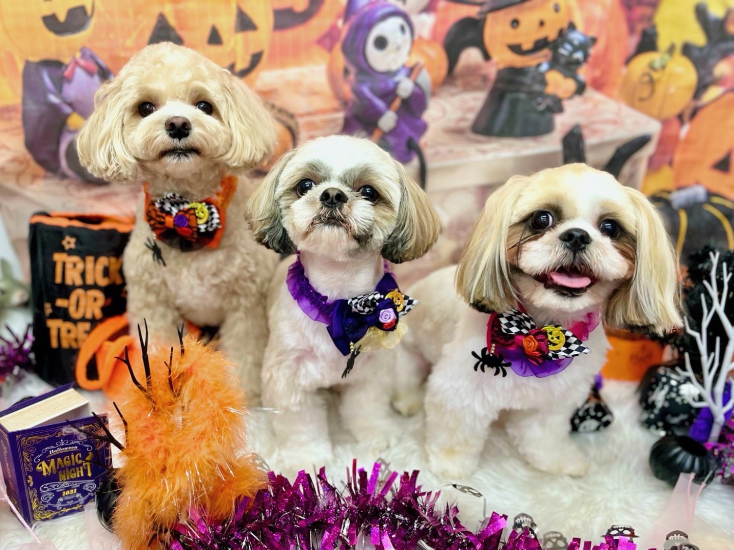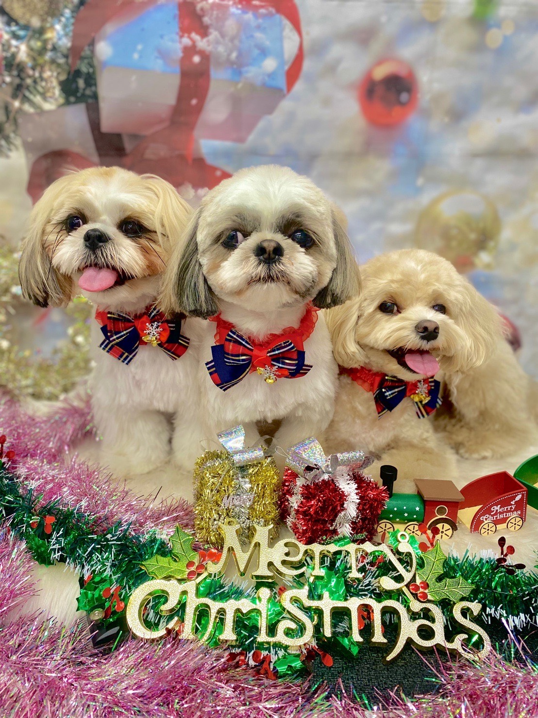 トリミング後にサービスで季節感のある写真を撮って送ってくださいます🐶🤍 待ち時間は他のわんちゃんと一緒に遊ばせてくれるので、わんこも楽しそうです🫶🏻